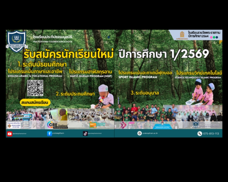 รับสมัครนักเรียนใหม่ 1/2569เปิดรับสมัครนักเรียนใหม่ ประจำปีการศึกษา 1/2569 ครบทุกระดับชั้น! มาร่วมเป็นครอบครัวเดียวกันที่ โรงเรียนประทีปธรรม มูลนิธิ (ปอเนาะแหลมสัก) จ.กระบี่ การันตีคุณภาพการจัดการศึกษาด้วยMar 1, 2026 11:45 AM โดย ดร.ปรีชา เริงสมุทร์ -