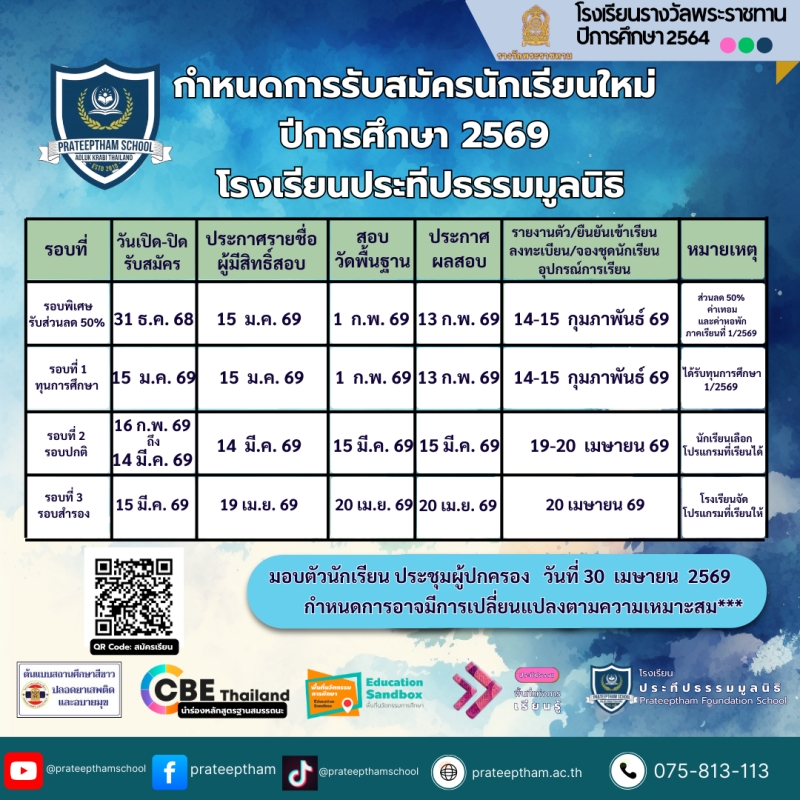 รับสมัครนักเรียนใหม่ 2569